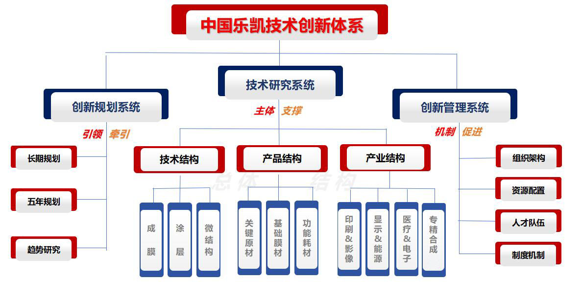 中國樂凱擁有以技術(shù)創(chuàng)新規(guī)劃系統(tǒng)為引領(lǐng)和牽引、以技術(shù)研究系統(tǒng)為主體支撐、以創(chuàng)新管理系統(tǒng)促進(jìn)體制機(jī)制優(yōu)化的完善、高效的技術(shù)創(chuàng)新體系。創(chuàng)新規(guī)劃系統(tǒng)主要發(fā)揮引領(lǐng)、牽引作用,把準(zhǔn)脈搏、認(rèn)清發(fā)展趨勢,明確重點(diǎn)、謀劃創(chuàng)創(chuàng)新方向,為中國樂凱持續(xù)發(fā)展提供動力和保障;技術(shù)研究系統(tǒng)主要是深入開展核心技術(shù)研究,進(jìn)行產(chǎn)品和關(guān)鍵原材料開發(fā)井實(shí)現(xiàn)產(chǎn)業(yè)化,支撐中國樂凱發(fā)展,是中國樂凱技術(shù)創(chuàng)新體系的主體和支撐;創(chuàng)新管理系統(tǒng)主要發(fā)揮體制機(jī)制促進(jìn)作用,監(jiān)控創(chuàng)新體系有效運(yùn)行,發(fā)揮支撐保障作用,推動技術(shù)創(chuàng)新體系健康良性發(fā)展。