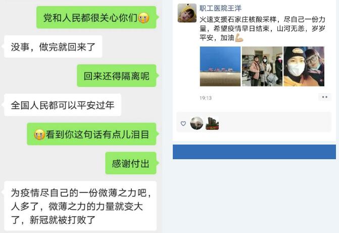 疫情就是命令,防控就是責任。按照有關(guān)安排部署,樂凱職工醫(yī)院迅速響應(yīng),立即選派2名業(yè)務(wù)素質(zhì)高、責任心強的醫(yī)務(wù)人員前往石家莊支援疫情防控工作。